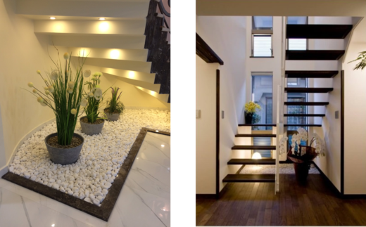 2. Decorating your downstairs area with white pebbles