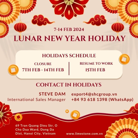 We would like to inform our partners and clients about the duration of Tet holidays will be on February 07, 2024 (Wednesday) and resume to work on February 15, 2024 (Thursday).