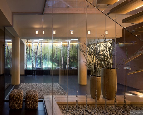 Those who love nature and want to make surroundings more natural can create small garden with pebble pavement inside house.
