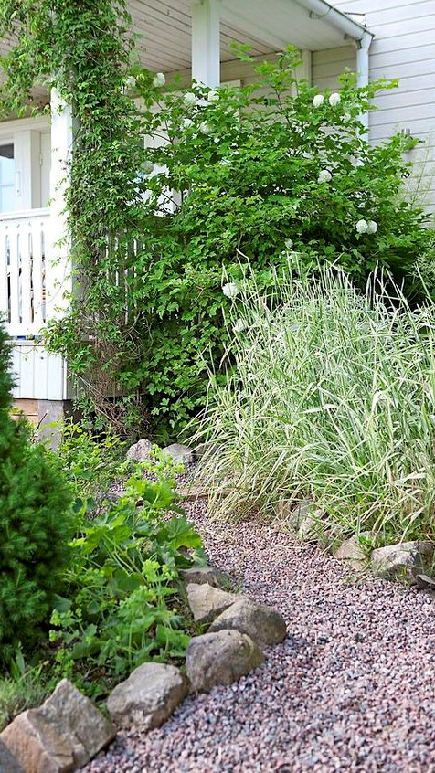 6. Inspect the area with crushed stone regularly, and remove leaves, grass clippings, twigs and other debris from on top of the stone, as this debris will break down to form a soil layer that will support weed growth atop the landscape fabric. Remove any small weeds that grow through the fabric as they emerge.