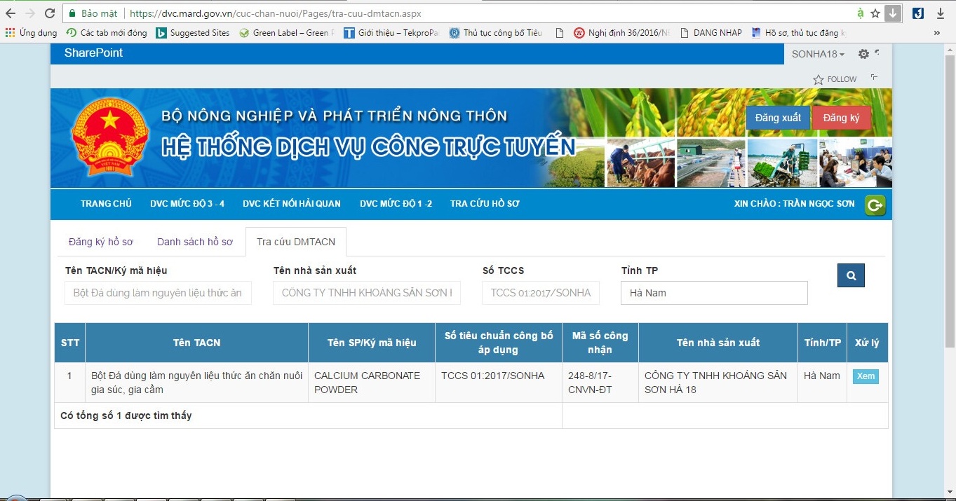 For more information about limestone for feed product of No.18 Son Ha in the list of lisenced product circulation, please visit website: http://dvccn.mard.gov.vn/Pages/dmtacnsxtn-dientu.aspx and look for accreditation codes 247-8 / 17-CNVN-DT and 248-8 / 17-CNVN-DT.